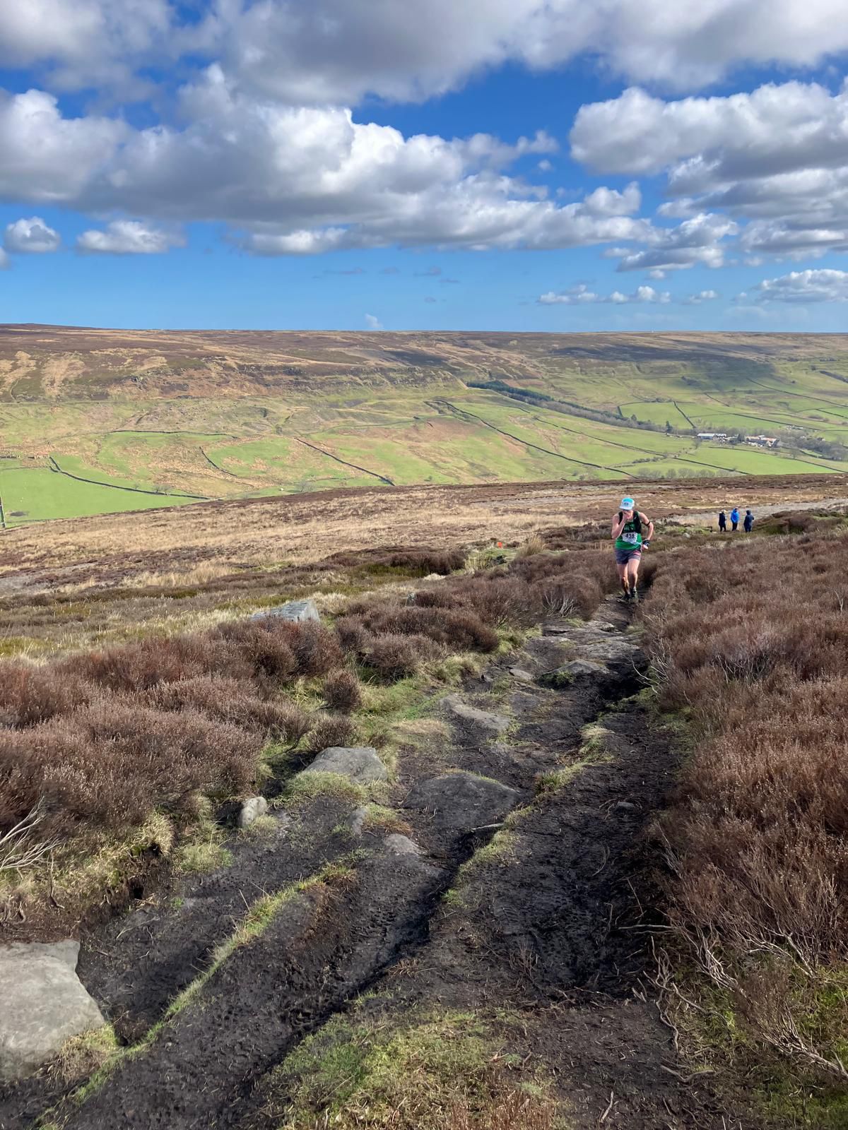 There are many reasons for choosing to run a fell race.Having the start and finish point being the second highest pub in England, and the subsequent promise of a roaring fire and substantial dinner portions may not be the most common but are no less legitimate. It is a rare race that can offer these, but the Blakey Blitz is one. Like its historically significant starting point, much of the organization is also old-school: Entry-on-the-day, cash only, and a handheld stopwatch to keep time. None of this means the race is any less official or well organized. Indeed, simplicity ensured a smooth process and the sun shone on the efforts of all. Literally. It was a rare sunny day that saw four Totleys on the top of Blakey Ridge giving 10 miles their best effort over the North York Moors.
